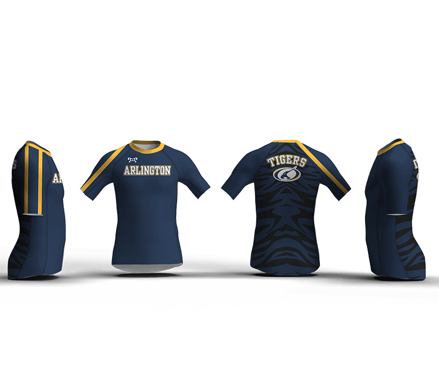 Our compression shirts are available in a youth, men or womens cut. They are made with the same 7 oz. poly/lycra/spandex blend that our singlets are made of for a perfect alternate team uniform. They feature a 3” NFHS approved tail to help it stay tucked during a match and strong flatlock stitching and raglan sleeves. These are a medium compression shirt that are made to hug the body, if you like a loser feel, size up.
