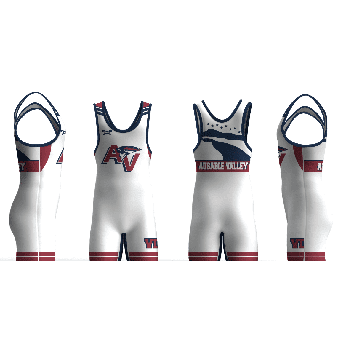 We fully sublimate all of our singlets so that your custom art and logos will look great wash after wash with no cracking, peeling or fading. Our Singlets are made of 7.6 oz. Poly / Lycra /Spandex fabric, for that perfect fit and feel. Top quality flat-lock stitching is used for the strongest and most comfortable seams. We finish off these singlets with soft covered elastic leg bands and internal sublimated sizing for a smooth comfortable feel that won’t come off.