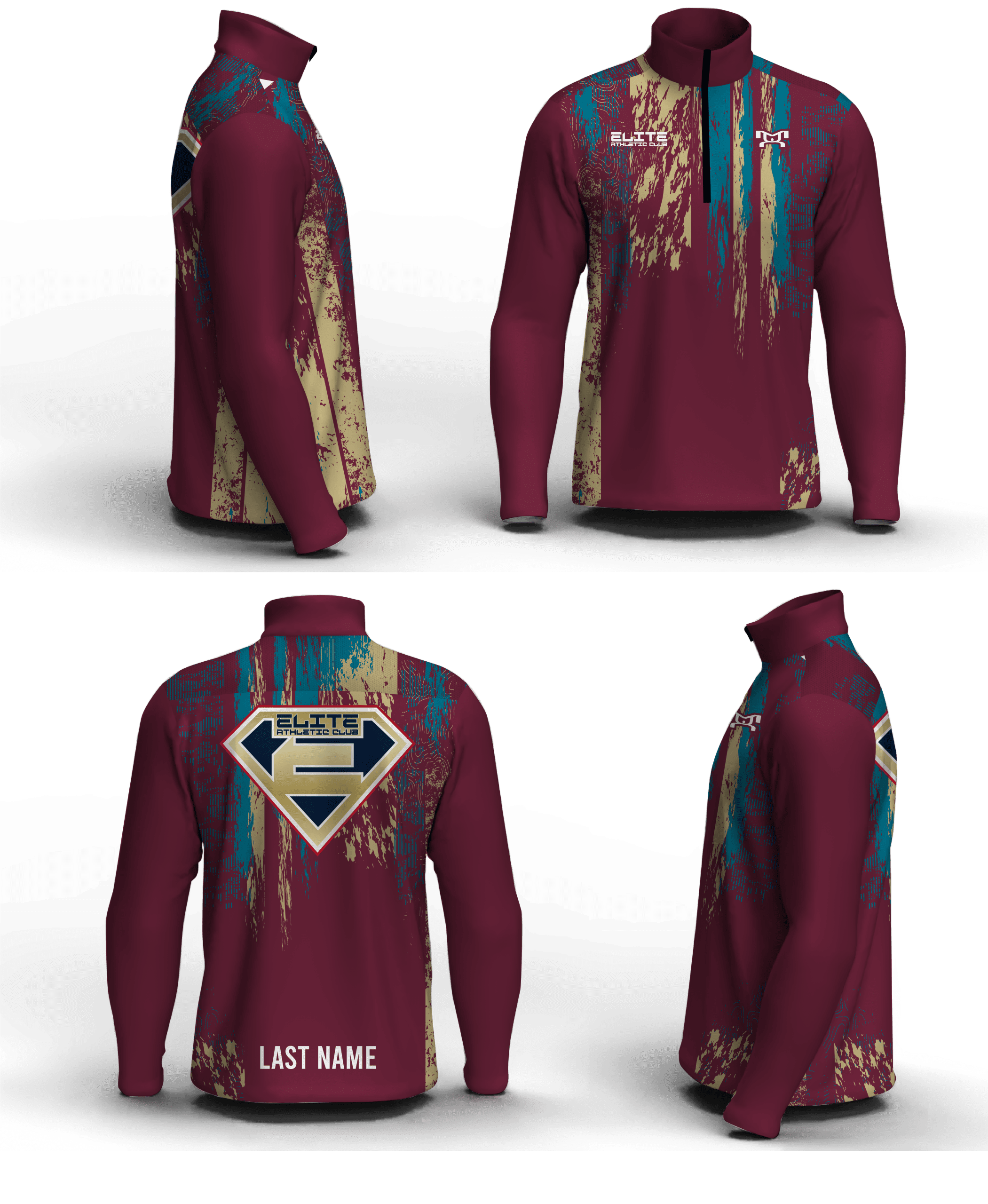 Elite Athletic Club Maroon & teal Men’s Mid-Weight Custom Quarter Zip