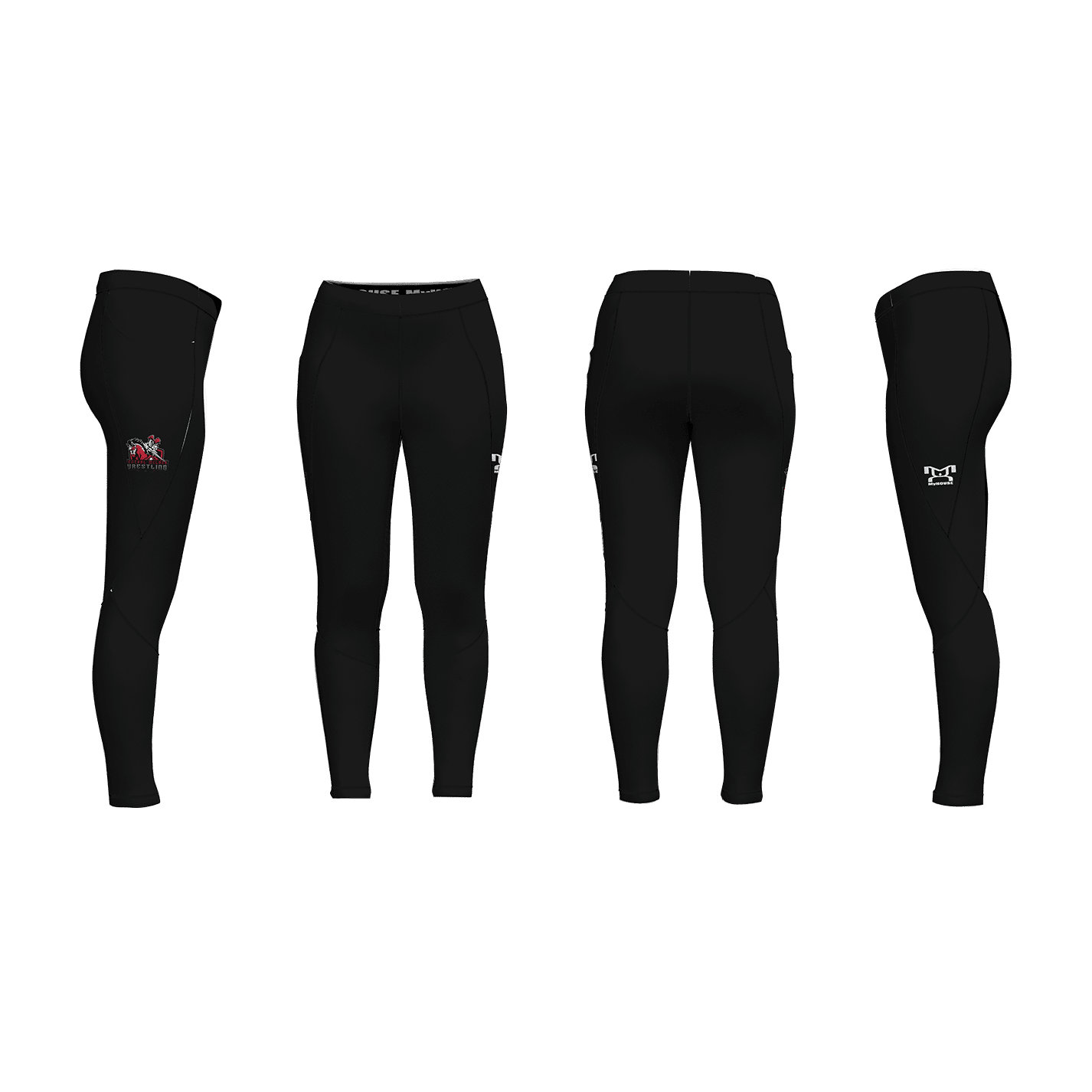 These full length sublimated leggings are made with 7 oz. poly/ lycra/ spandex blend fabric and are fully customizable for your team. They have a soft knitted internal MyHOUSE waistband, comfortable seam placement that feels great and gives you a smoother look and strong flat-lock stitching throughout for durability. They have flat sidepockets to hold your phone.