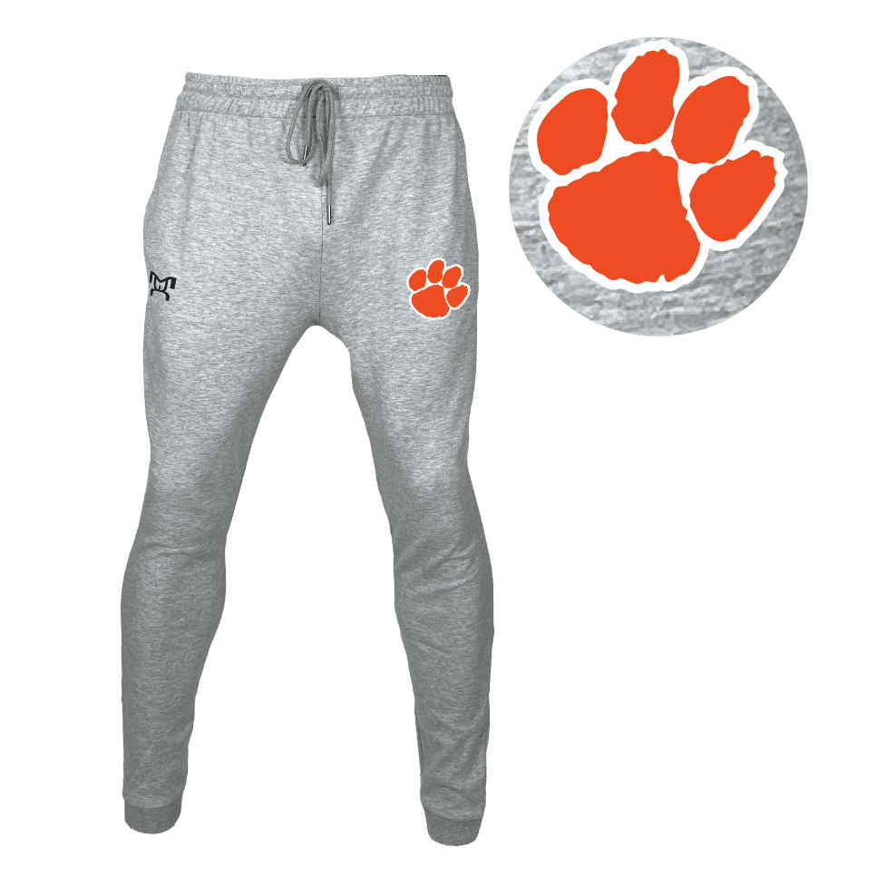 You are going to love these! Heathered grey, CVC: 80/20 cotton/poly heavyweight 10.6 oz. soft washed fabric w/ ribbed bottom cuffs and matching drawcord. Black Embroidered MyHOUSE logos on opposite hip, customizable with an opposite hip logo.