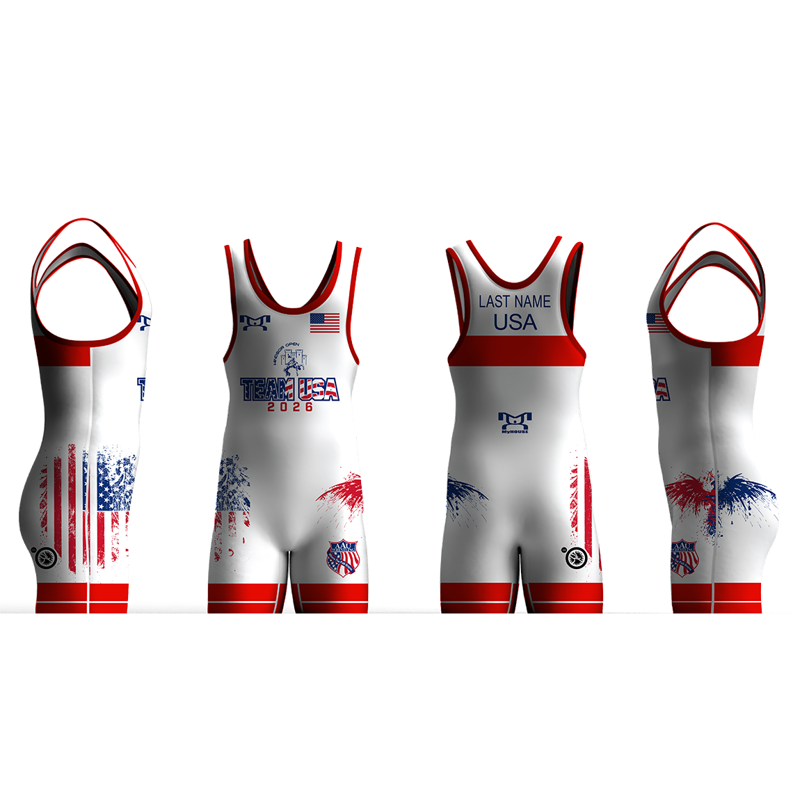 We fully sublimate all of our singlets so that your custom art and logos will look great wash after wash with no cracking, peeling or fading. Our Singlets are made of 7.6 oz. Poly / Lycra /Spandex fabric, for that perfect fit and feel. Top quality flat-lock stitching is used for the strongest and most comfortable seams. We finish off these singlets with soft covered elastic leg bands and internal sublimated sizing for a smooth comfortable feel that won’t come off.