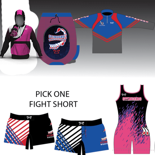 Stingers Wrestling Club Women’s Ultimate Bundle (PLEASE CHOOSE ONE FIGHT SHORT) NAMES WILL BE ON SINGLET ONLY (Copy)