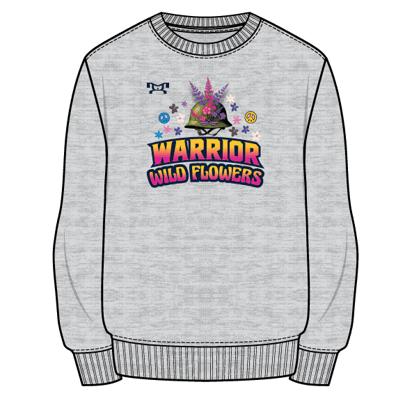Warrior Wrestling PA-Wildflowers Girls 2026 Psychadelic Duals Custom Sublimated Decal Grey Crewneck